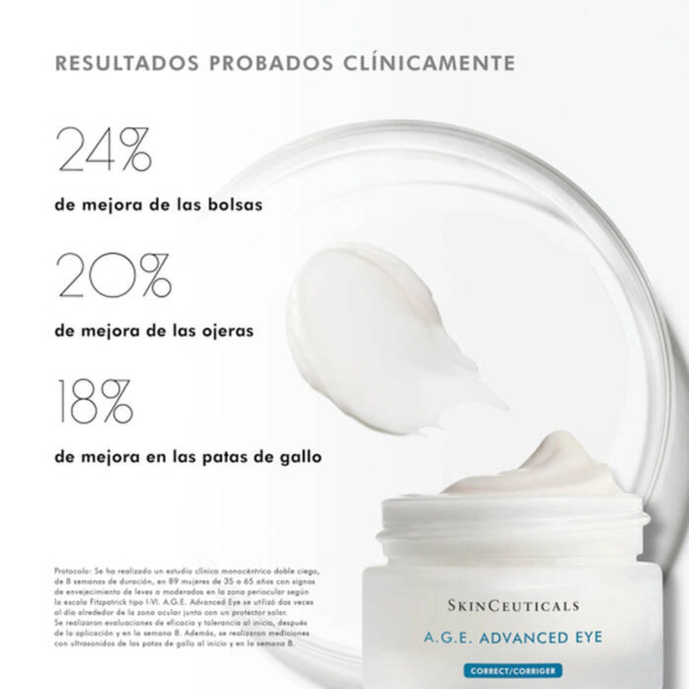 A.G.E. Eye Complex es una crema anti edad para el contorno de ojos, formulado para mejorar el aspecto de las bolsas y de las ojeras. Esta crema, de acabado muy sedoso, aumenta de forma inmediata la luminosidad en el contorno de los ojos, mientras mejora, de forma visible, la firmeza y la elasticidad para un aspecto más descansado