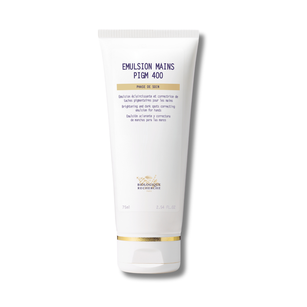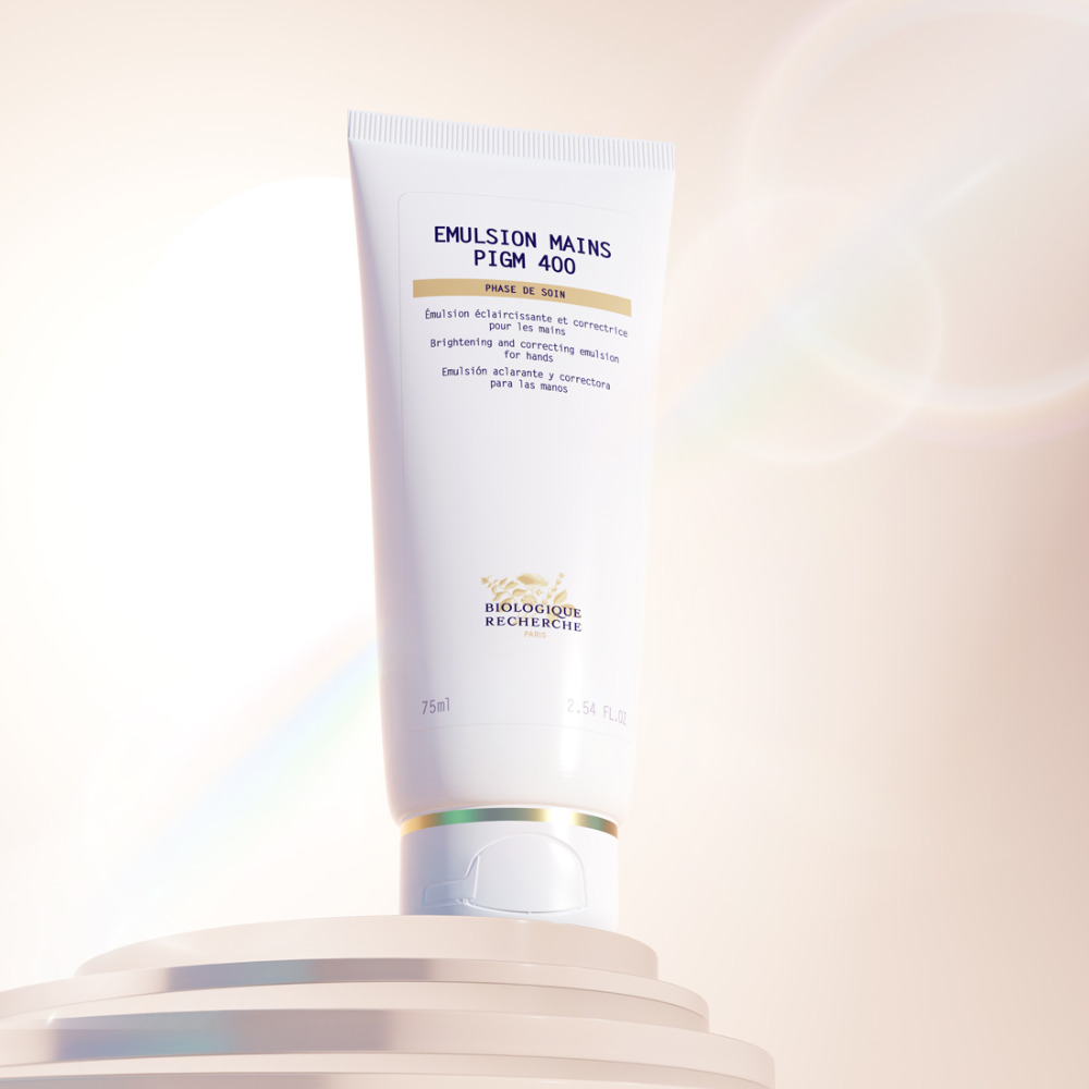 Aplicar Emulsion Mains PIGM 400 de Biologique Recherche en las manos y masajear suavemente hasta su total absorción.